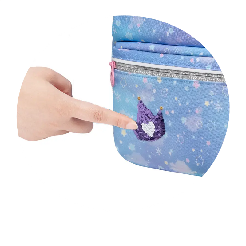 Die 180° offene Konstruktion macht es einfach, das Mäppchen zu befüllen. Es bietet genügend Platz für alles, was in der Schule benötigt wird. Selbstverständlich ist das Design abgestimmt auf das Design des Rucksacks des 4-teiliges Sets.