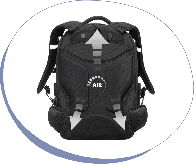 Hintere Reißverschlusstasche für sicheres Verstauen von Tablet, Laptop, etc.