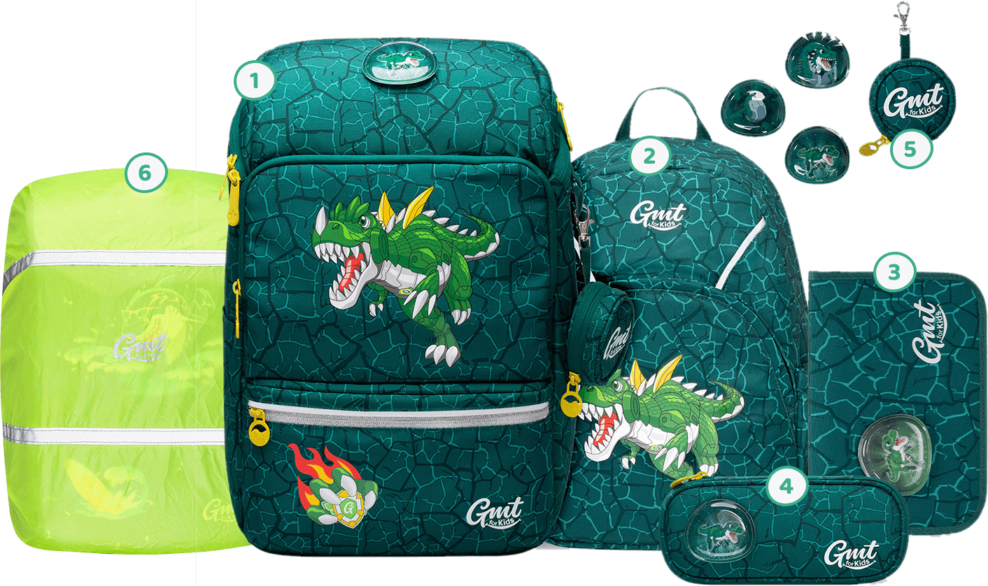 GMT LIGHT School Backpack 6-Piece Set - Robot Dino