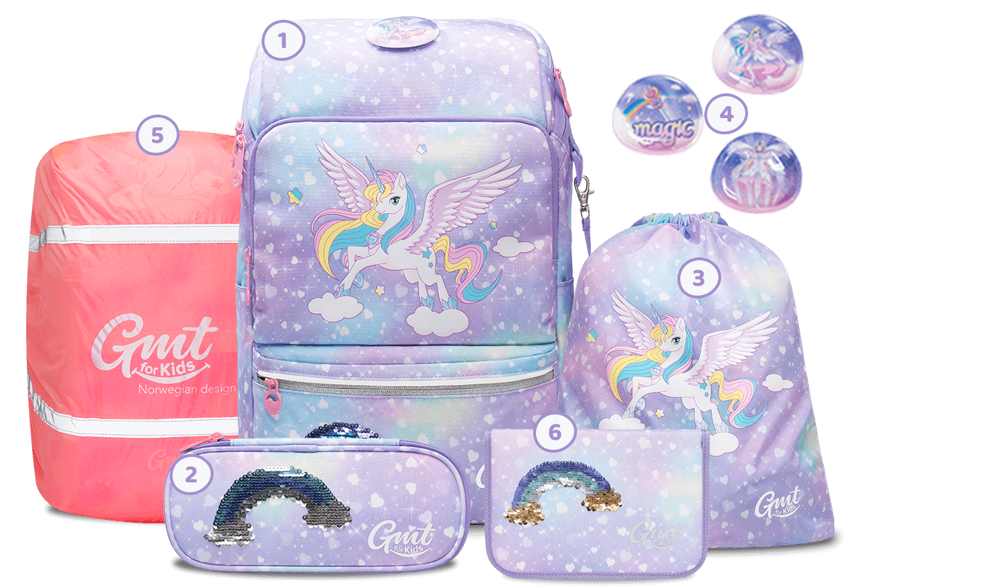 GMT LIGHT 780G School Backpack 6-Piece Sport-Set - Rainbow Unicorn